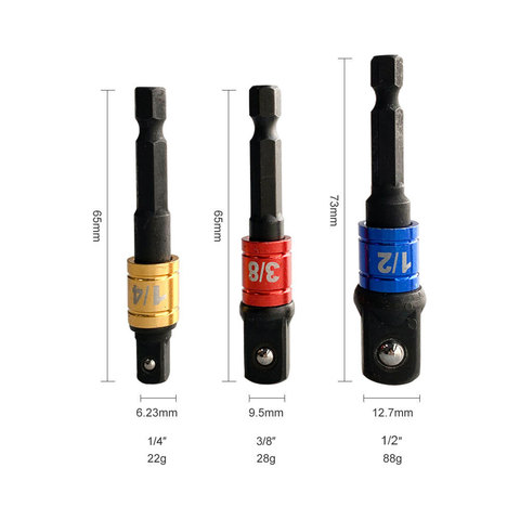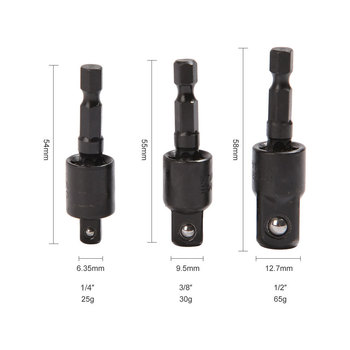 3 miếng điện khoan ổ cắm Bộ chuyển đổi bộ Hex Shank tác động điều khiển ổ cắm Bộ chuyển đổi ổ cắm để 1/4 "3/8" 1/2 "tác động điều khiển Bộ chuyển đổi